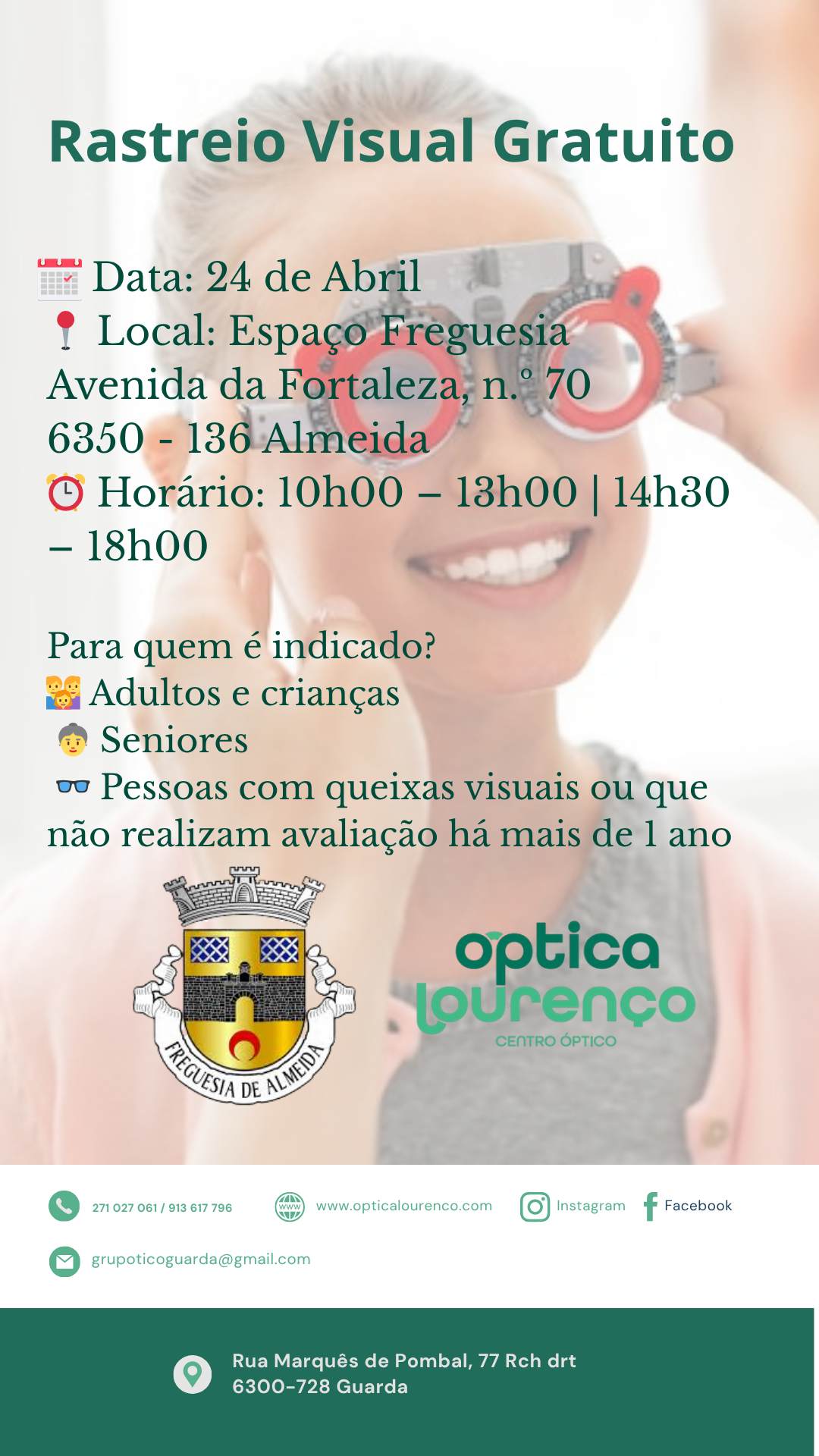 | Segunda-feira | 09:00 - 12:30 | 14:00 - 16:00 | - |
